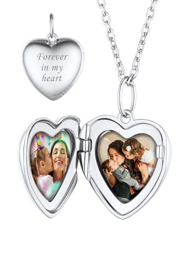 LYGBAOFUL 925 Sterling Silver Heart Locket Necklace For Women, Shape Photo Pendants Pendant Necklace, Picture That Holds Pictures