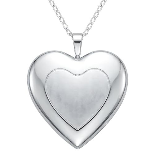 Sterling Silver Heart Locket Pendant, Hand Crafted Photo Locket Necklace with Elegant Design, Platinum Plated Keepsake for Women, Memory Jewelry Gift