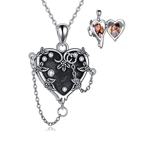 YAFEINI Witches Heart Locket Necklace Sterling Silver Locket Necklace that Holds Picture Gothic Jewellery Steampunk Heart Goth Halloween Gifts for Women