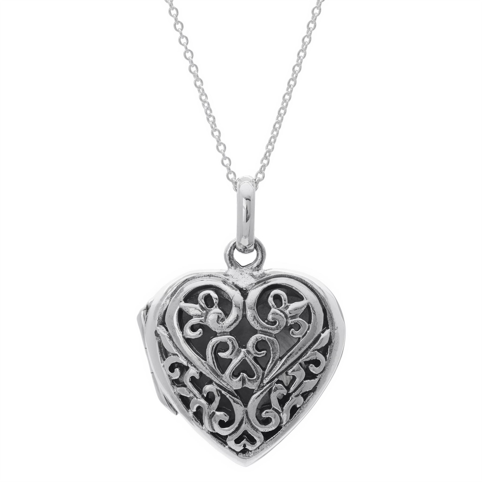 Silverly Sterling Silver Locket Solid 925 Filigree Heart Pendant Necklace