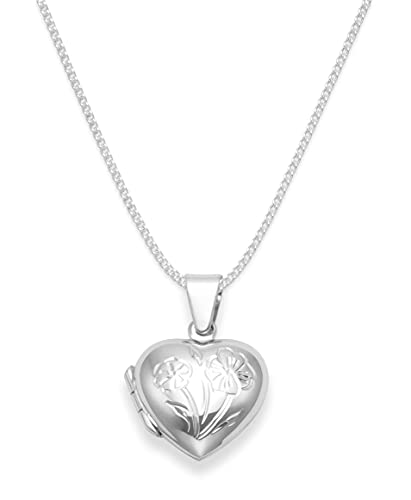 Heather Needham 925 Sterling Silver Children's Locket Necklace on 15" Silver Chain - opening locket with flowers - Size: 17mm x 14mm. Quality Gift Box 8011/15/B54.