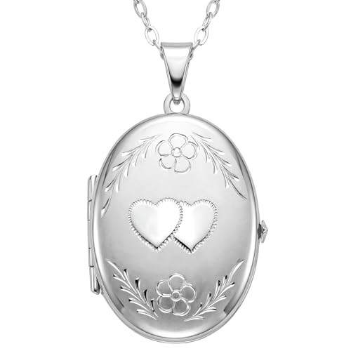 Alexander Castle 925 Sterling Silver Locket Necklace for Women - Girls 2 Photo Locket - 20mm x 15mm Oval Locket with 18" Silver Chain & Jewellery Gift Box
