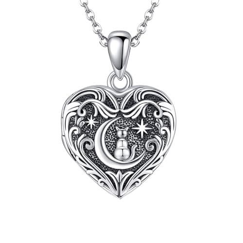 Cat Locket Necklace Sterling Silver Heart Locket Necklace That Holds Pictures Cat Pendant Jewellery for Women
