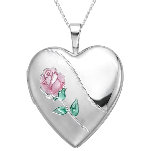 Alexander Castle 925 Sterling Silver Locket Necklace for Women - Girls 2 Photo Locket - 20mm x 20mm Rose Heart Locket with 18" Silver Chain & Jewellery Gift Box