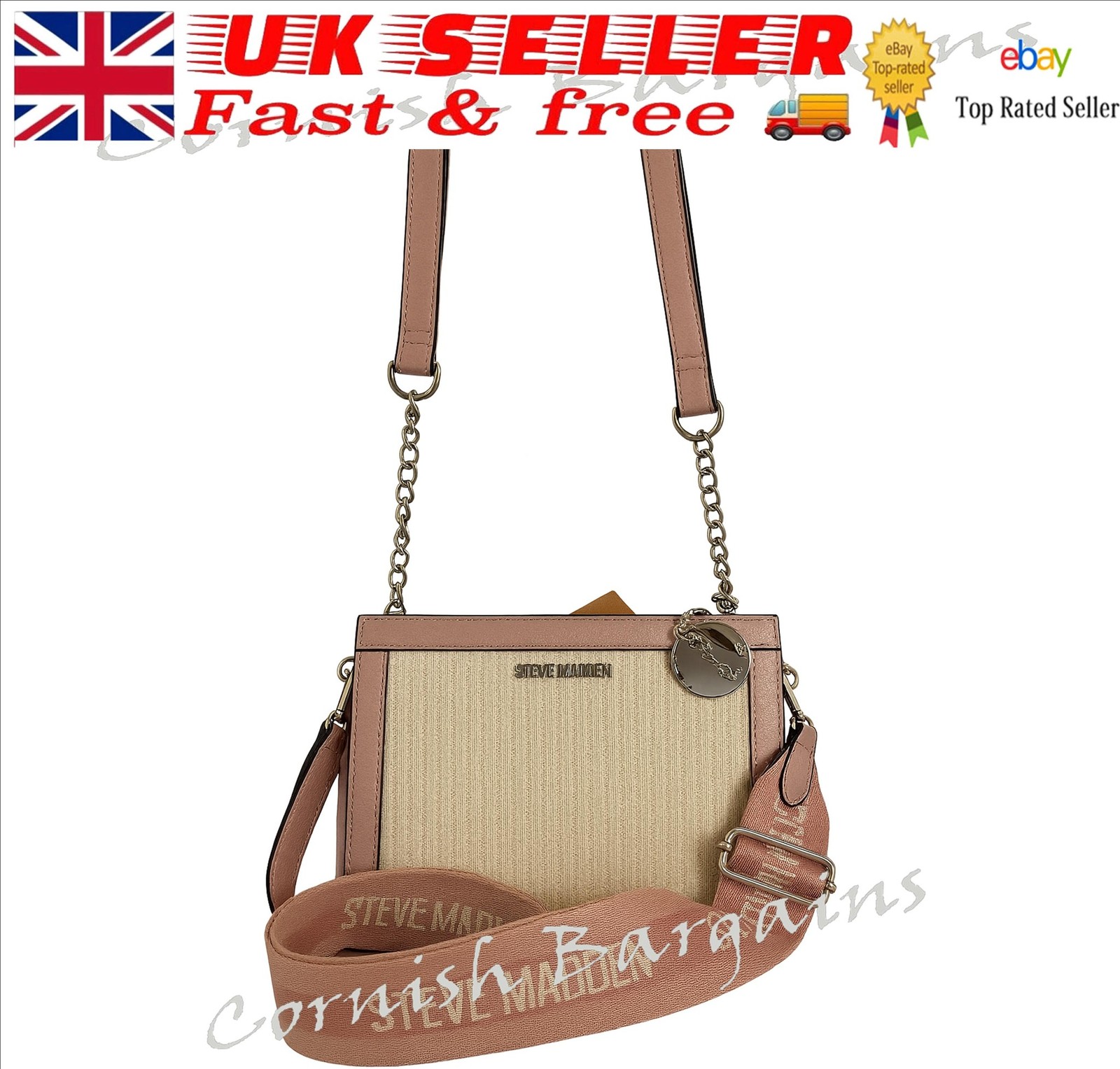 Steve Madden BGREER Straw 2 strapsCrossbody bag. Natural/Blush. BMWT