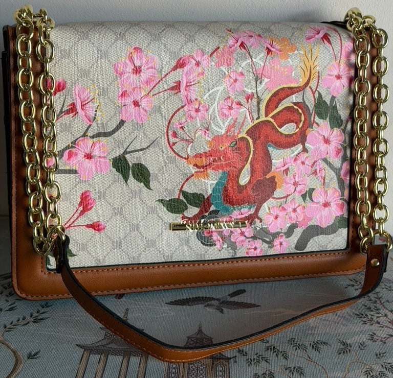 Steve Madden Dragon Sakura Cherry Blossom Flap Over Shoulder Bag NWT RRP£80
