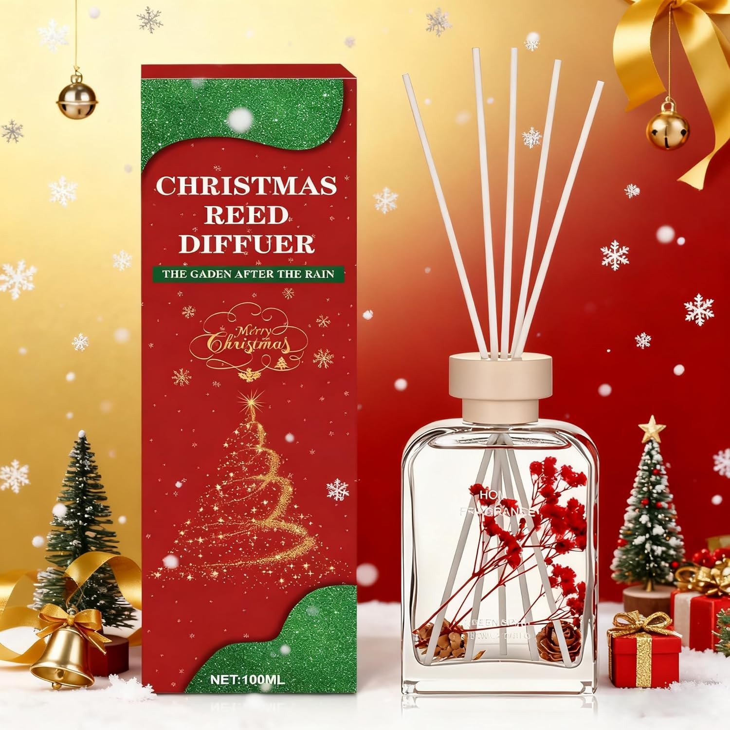 Christmas Reed Diffuser, 100ml Cinnamon Stick Christmas Diffuser with 5 Diffuse