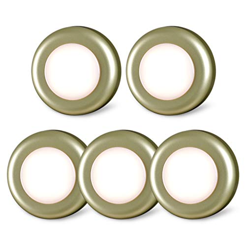 STAR-SPANGLED Tap Light Push Lights, Stick on LED Touch Puck Light AAA Battery Operated, Press Spot Lighting Indoor for Under Cupboard, Wardrobe, Cabinet, Kitchen (2.8inch, Golden, Warm White, 5 Pack)