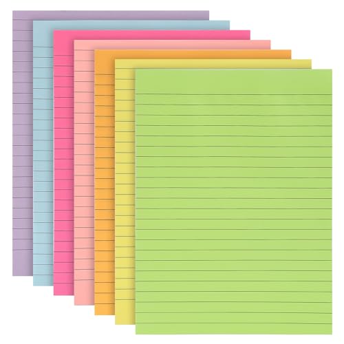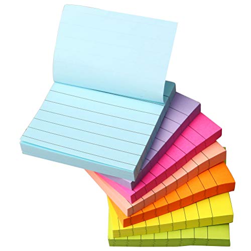 7 Pcs Lined Stick Notes, 6x8 in Large Self-Stick Note Pads Super Sticking Power Brilliant Colors Memo Pads for Notebook Office School & Home,50 Sheets/Pad