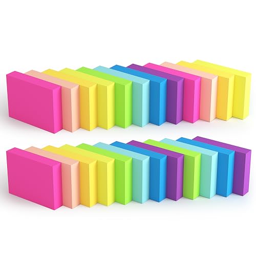 KIFZM 1920 Sheets 3x3 Inches Bright Sticky Notes,8 Brilliant Colors Assorted Removable Self-Stick Notes,80 Sheets/Pad