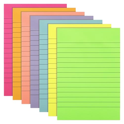 8 Pads - 4X6 in Lined Sticky Notes,8 Colors Post Self Stick Notes Pads, Bright