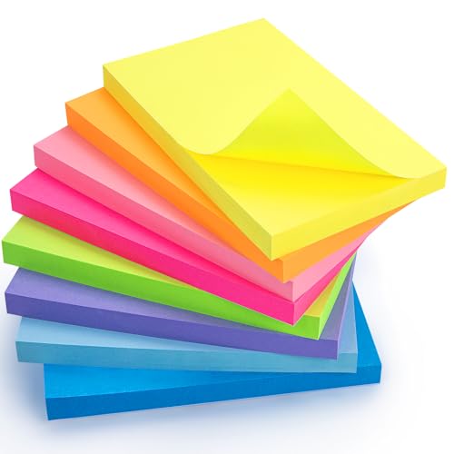 7 Pcs Stick Notes, 4x6 in Self-Stick Note Pads Super Sticking Power Brilliant Colors Memo Pads for Notebook Office School & Home,50 Sheets/Pad