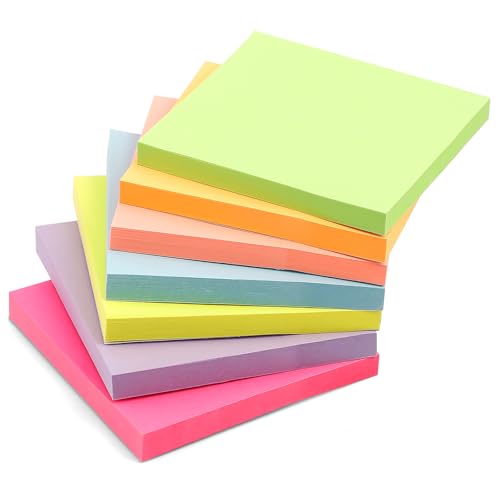 OWLKELA 800pcs Coloured Sticky Notes, 75 x 75mm, 8 Pads of 100 Sheets Self-Stick Notes, Sticky Notes Set for Marking and Highlighting Pages