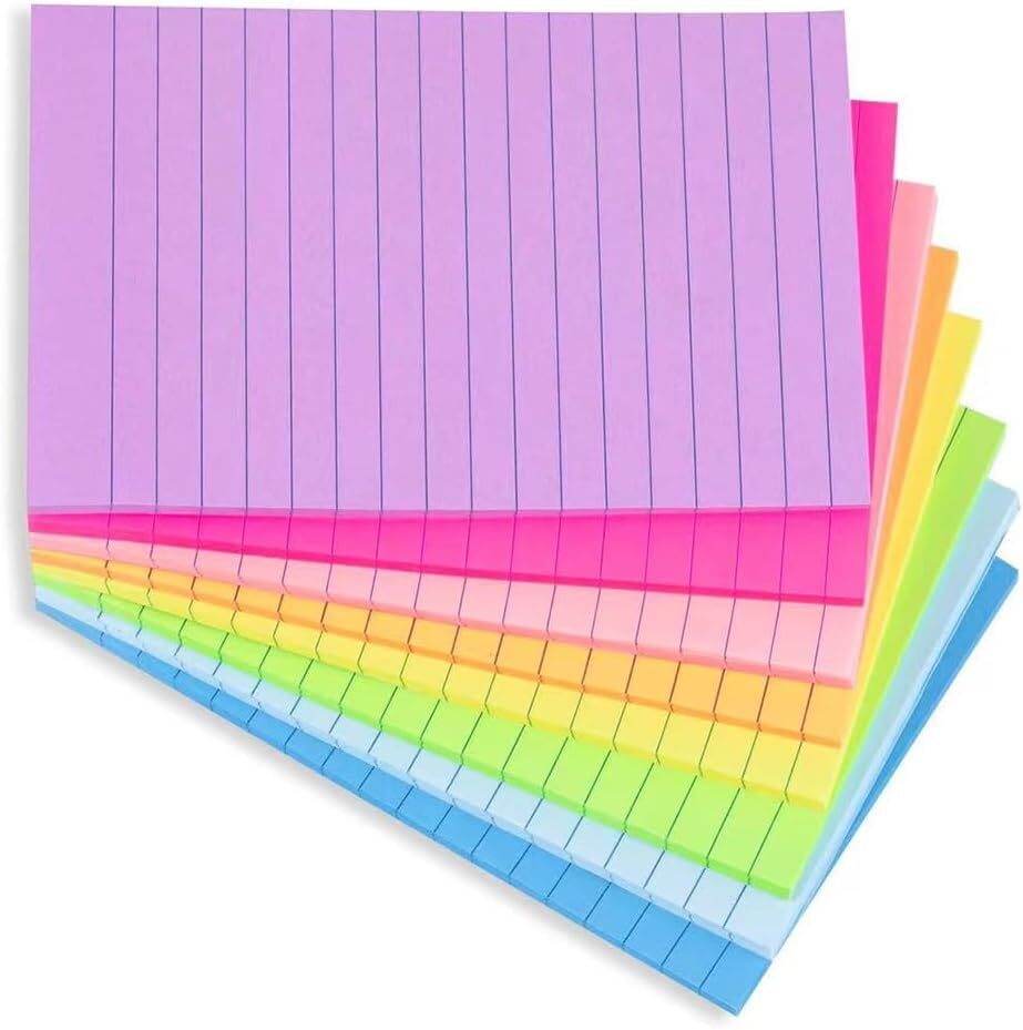 4 in x 6 in Lined Sticky Notes for Post,6 Bright Colors Self-Stick Notes, 45 Sh