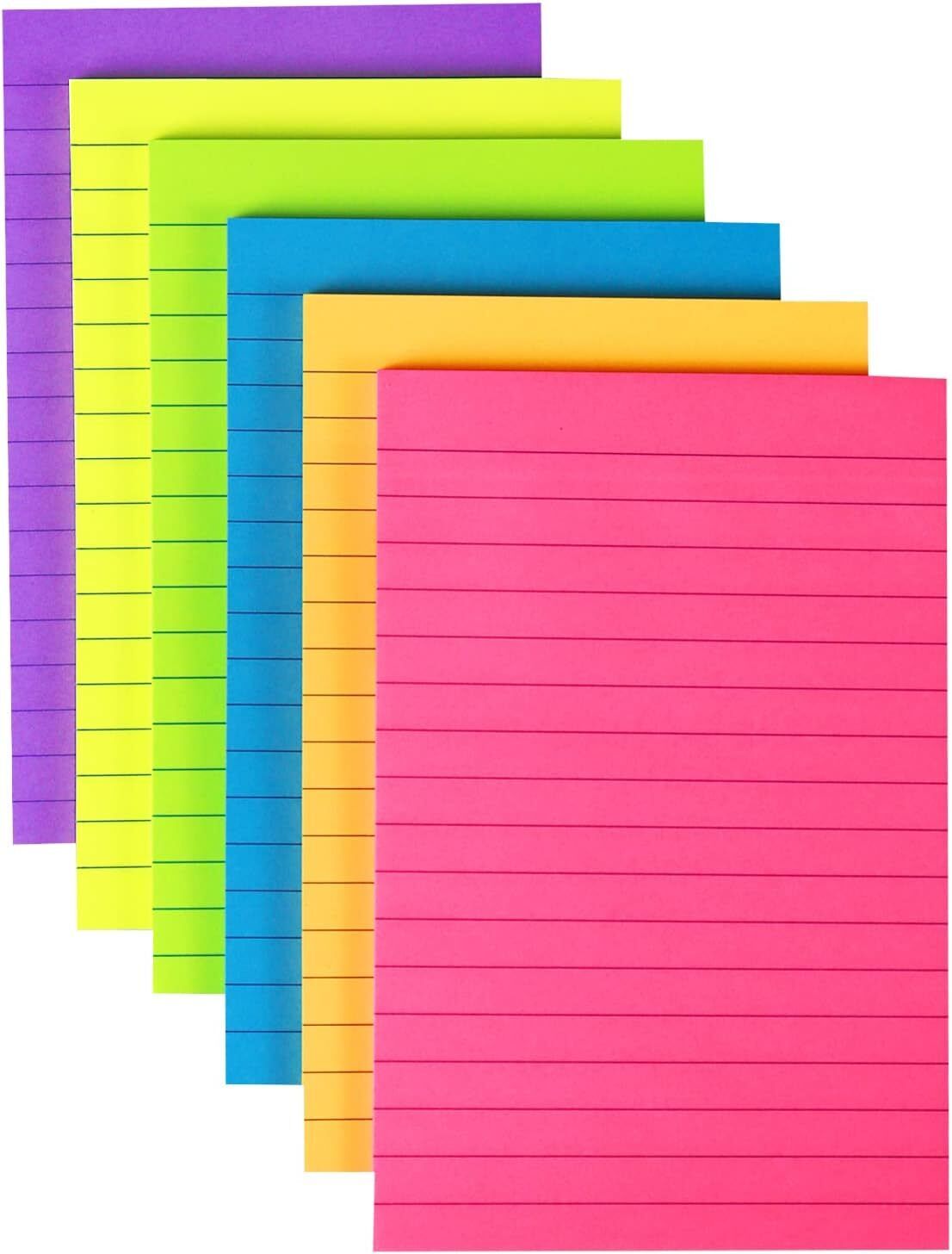 4 in x 6 in Lined Sticky Notes for Post,6 Bright Colors Self-Stick Notes, 45 Sheets Per Pad, 6 Pads, 270 Sheets Total
