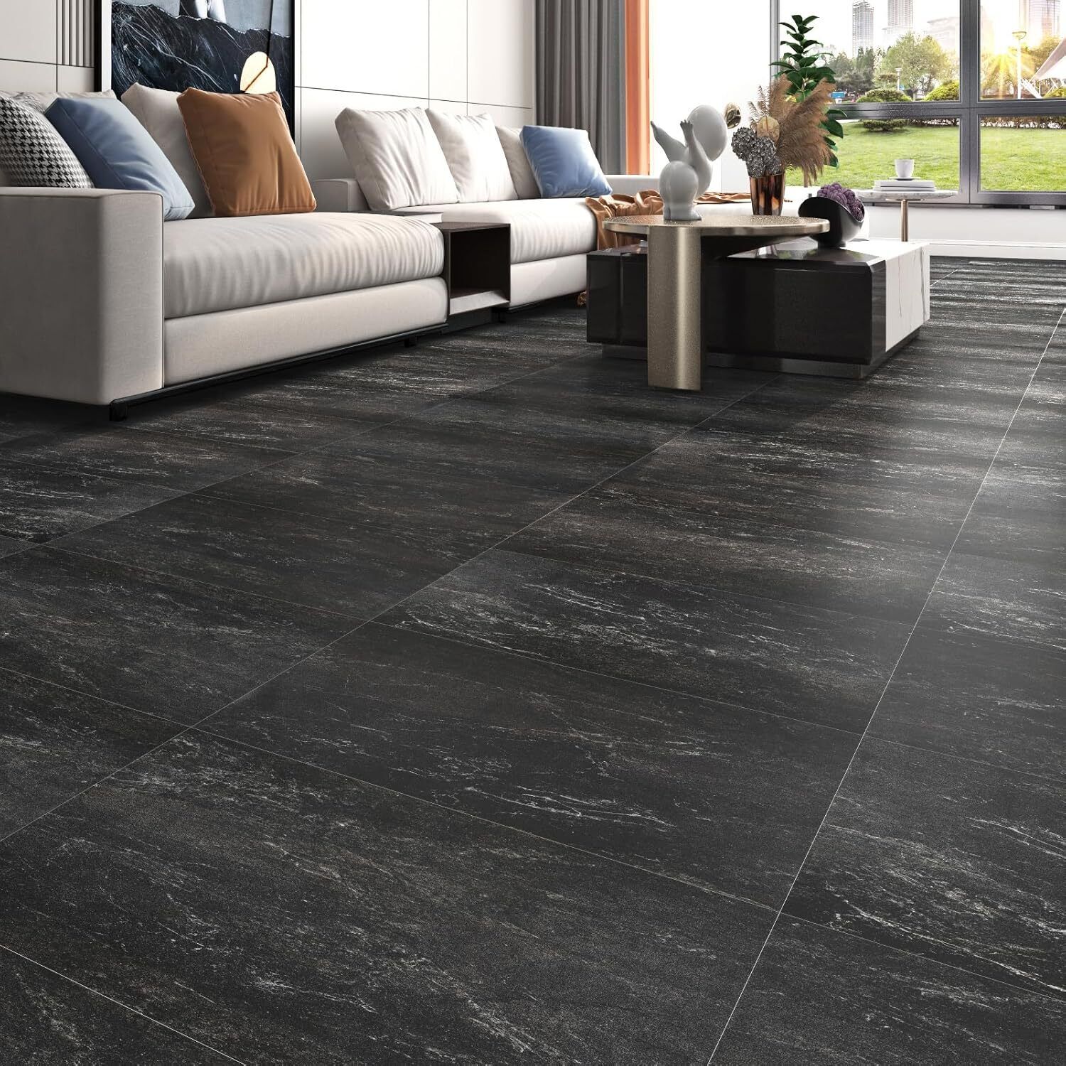 Novecrafto (Black Marble, Pack of 60) Self Adhesive Vinyl Floor Tiles - Peel and Stick Tiles, Durable on Flooring