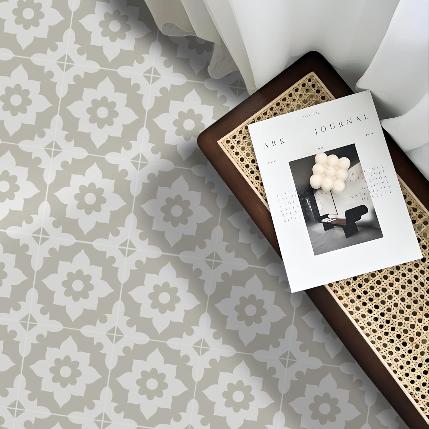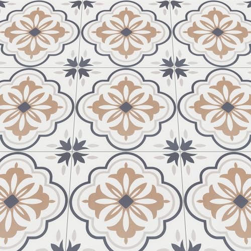 Alwayspon Tile Sticker, Light Brown Flower Self Adhesive Stick on Floor Tiles T