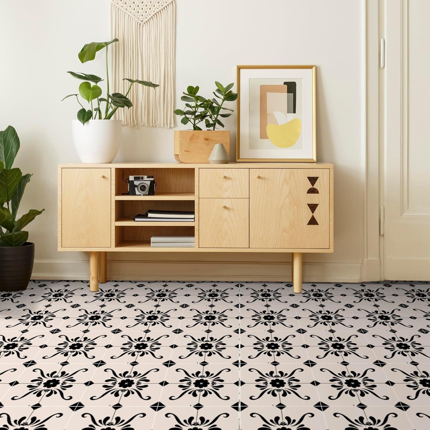 Alwayspon Vinyl Flooring, Beige White Self Adhesive Stick on Floor Tiles Transf