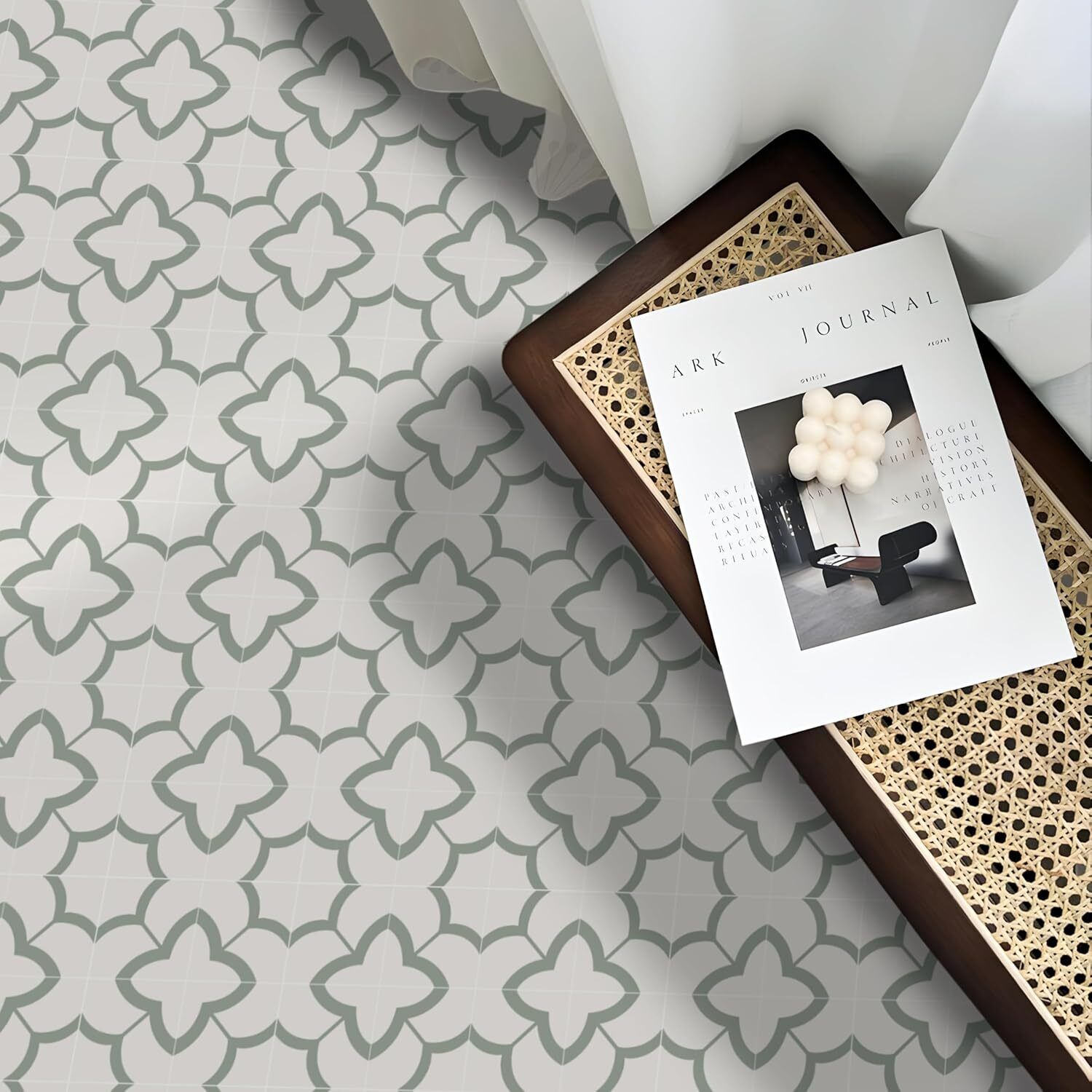 Alwayspon Vinyl Flooring, Sage Green Self Adhesive Stick on Floor Tiles Transfe