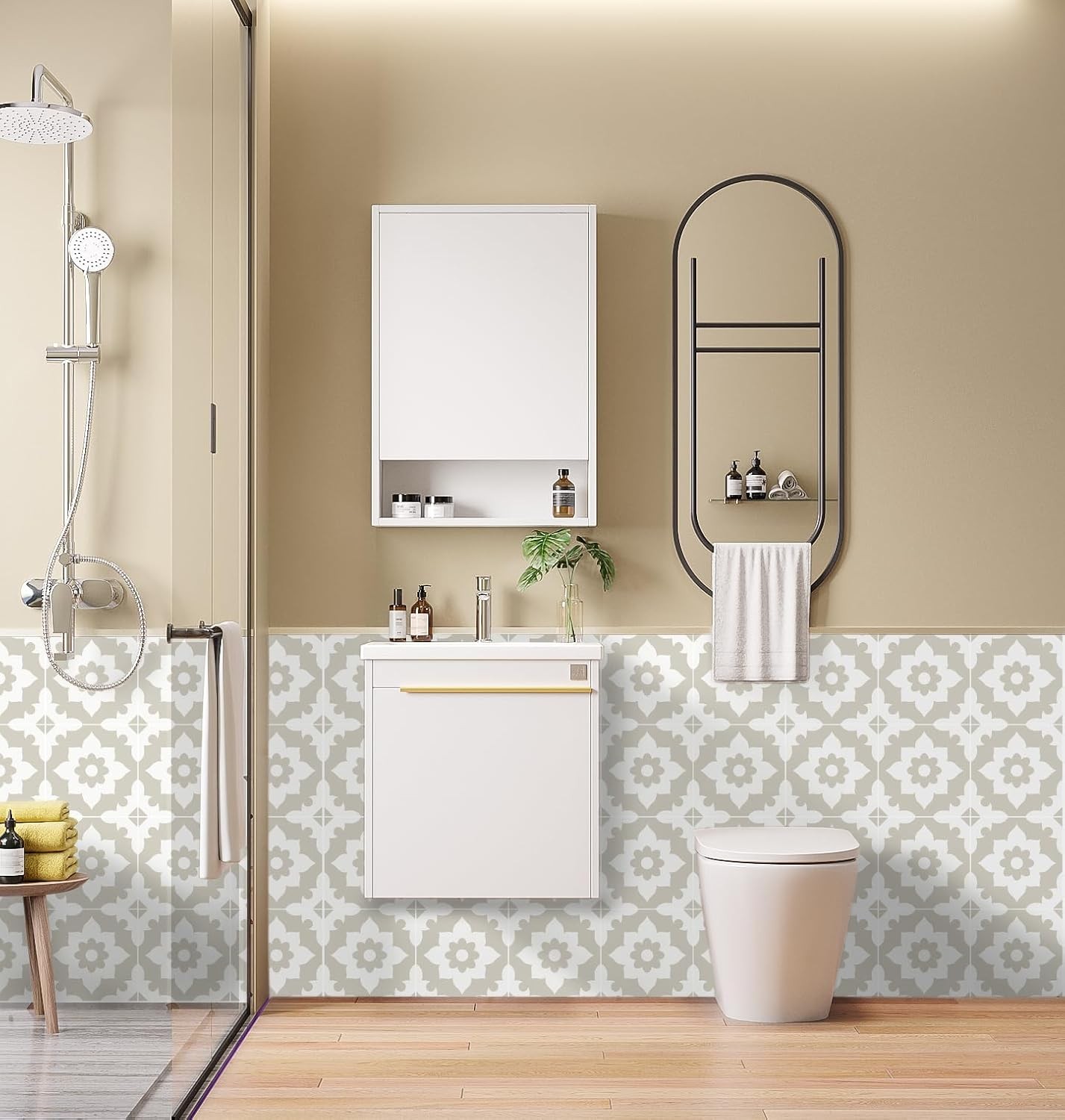 Lukery 20/30/40 PCS Tile Stickers Stick on Tiles, Self Adhesive Wall Tiles for Kitchen Bathroom, Oil Proof Peel and Stick DIY Floor Mosaic Pattern Wall Tiles, 10x10cm (40PCS,Vintage Mosaic)