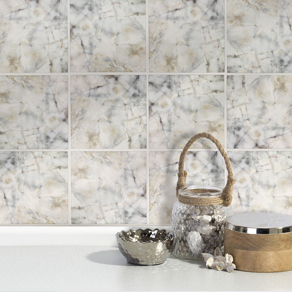 Self Adhesive Wall Tiles | Pack 8 Classic Marble 15cm Stick On Wall Tiles