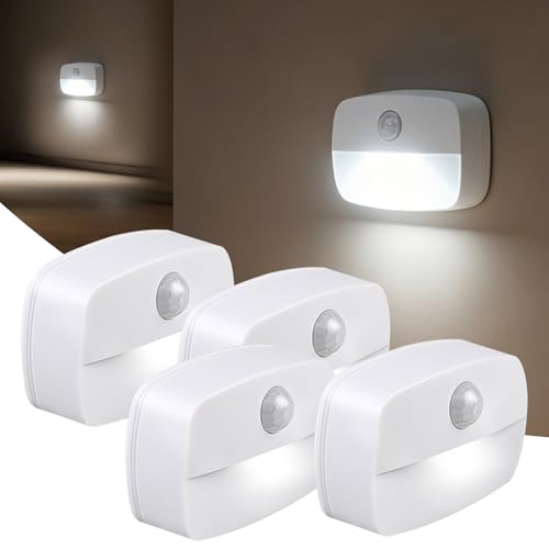 AmmToo Motion Sensor Night Light (4 Pack), Battery Operated LED Stick-On Lights with Auto On/Off, Wireless Indoor Sensor Lights for Stairs, Hallway, Bathroom, Closet, Kitchen, Children's Room