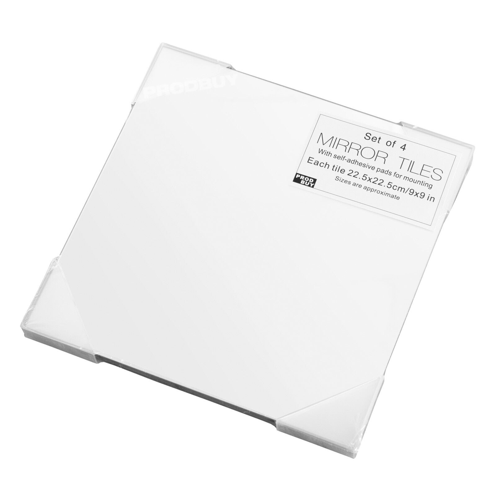 Set of 4 Glass Mirror Tiles Large 9" Square Self Adhesive Stick On Panels DIY