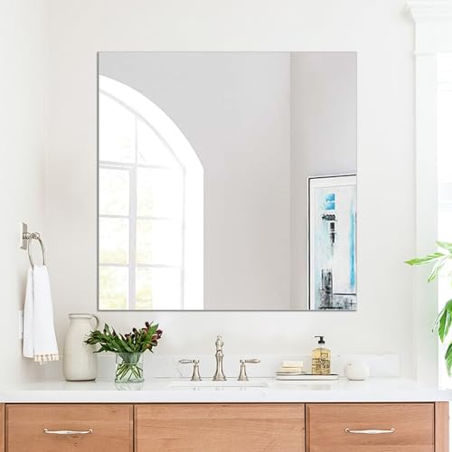 TSKDKIT 50 x 50 cm Stick on Mirror for Wall, 2.5mm Acrylic Plastic Mirror non Glass Mirror Tiles Self Adhesive Mirror Large Square Mirror Stickers for Bathroom, Bedroom, Home Decoration