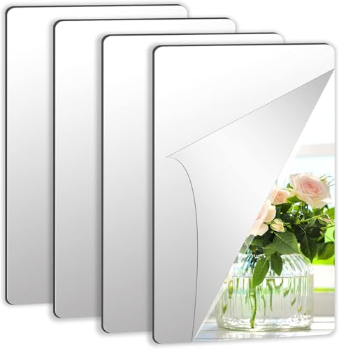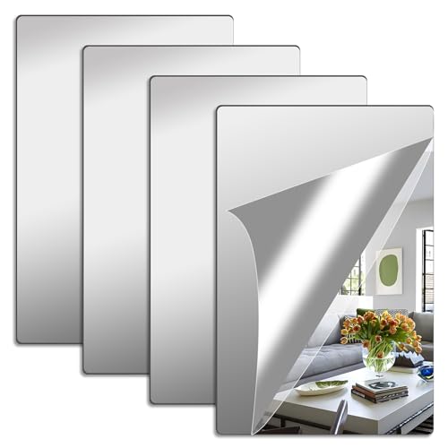 ASelected 4 Pack Self Adhesive Mirrors Sheets,A4 Thickened Acrylic Mirror Tiles,2MM Thick Acrylic Stick On Wall Mirrors,Wall Mirror Self Adhesive for Bathroom,Bedroom,Living Room,Hallway Decoration