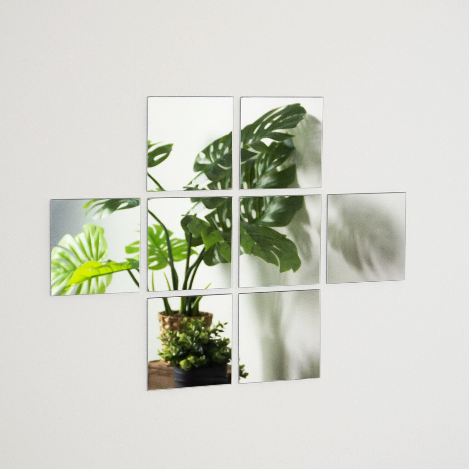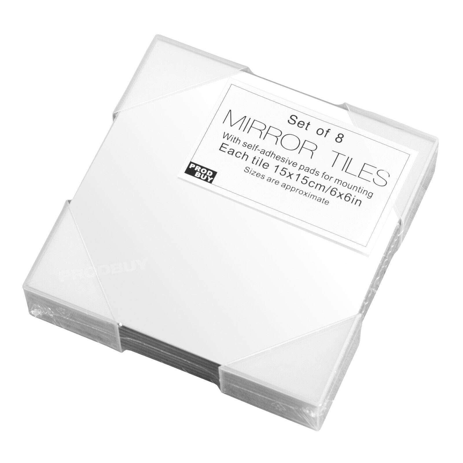 Set of 8 Glass Mirror Tiles 15 x 15cm Square Self Adhesive Stick On Panels DIY