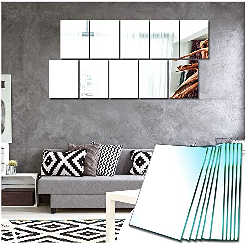 Sqinor Mirror Tiles Self Adhesive HD Glass 15x23cm 10 Pieces - Stick On Mirror Wall Decoration Rectangle Wall Mirrors for Living Room Bedroom Hallway (Fine Grinding)