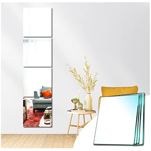 Sqinor Full Length Mirrors Long Wall Mirror Self Adhesive Mirror Tiles Glass 35x35 Stick On Mirrors for Bedroom, Living Room, Wardrobe Doors, Walls (35x35cm, 4pcs)
