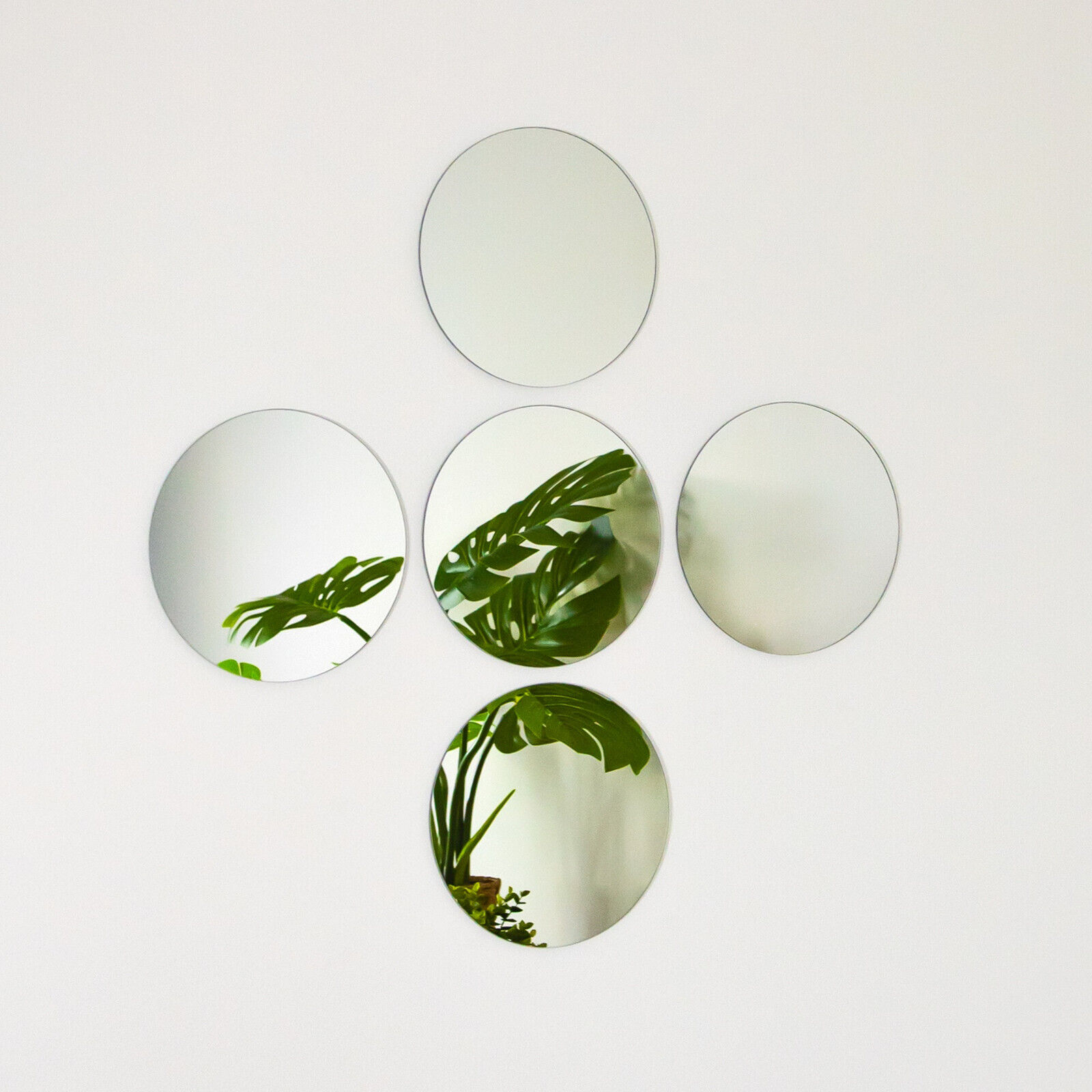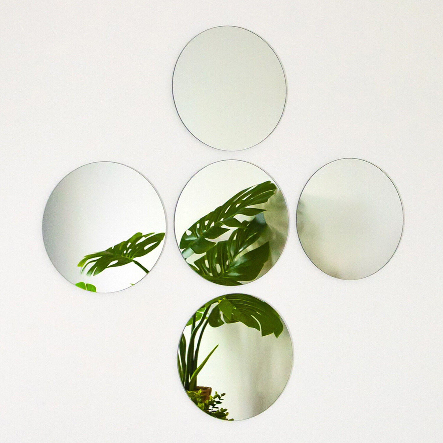 Set of 5 Round 8" Glass Mirror Wall Tiles Self Adhesive Stickers Stick On Pads