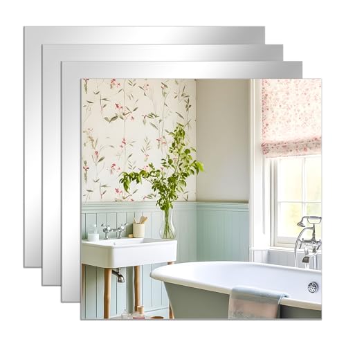 Sqinor Self Adhesive Mirror Tiles Glass Square Stick On Full Length Long Wall Mirrors for Living Room Bedroom Hallway Walls (30x30cm, 4pcs)