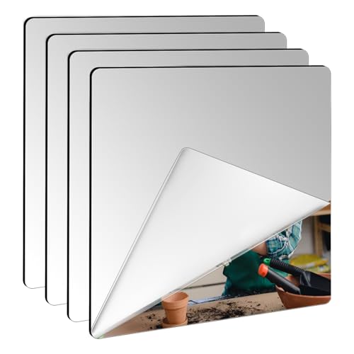Hode 4 Pieces Self Adhesive Mirror Tiles 20X20Cm (2Mm Thick), Acrylic Stick on M