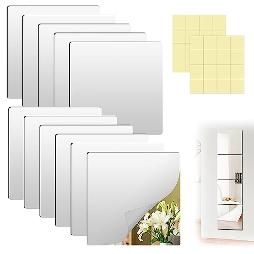 Honcet 10 Pcs Mirror Stickers 20x20cm, Self Adhesive Stick on Mirror Tiles for Wall, Tile Stickers Acrylic for Home Bathroom, Door (2mm Thick)