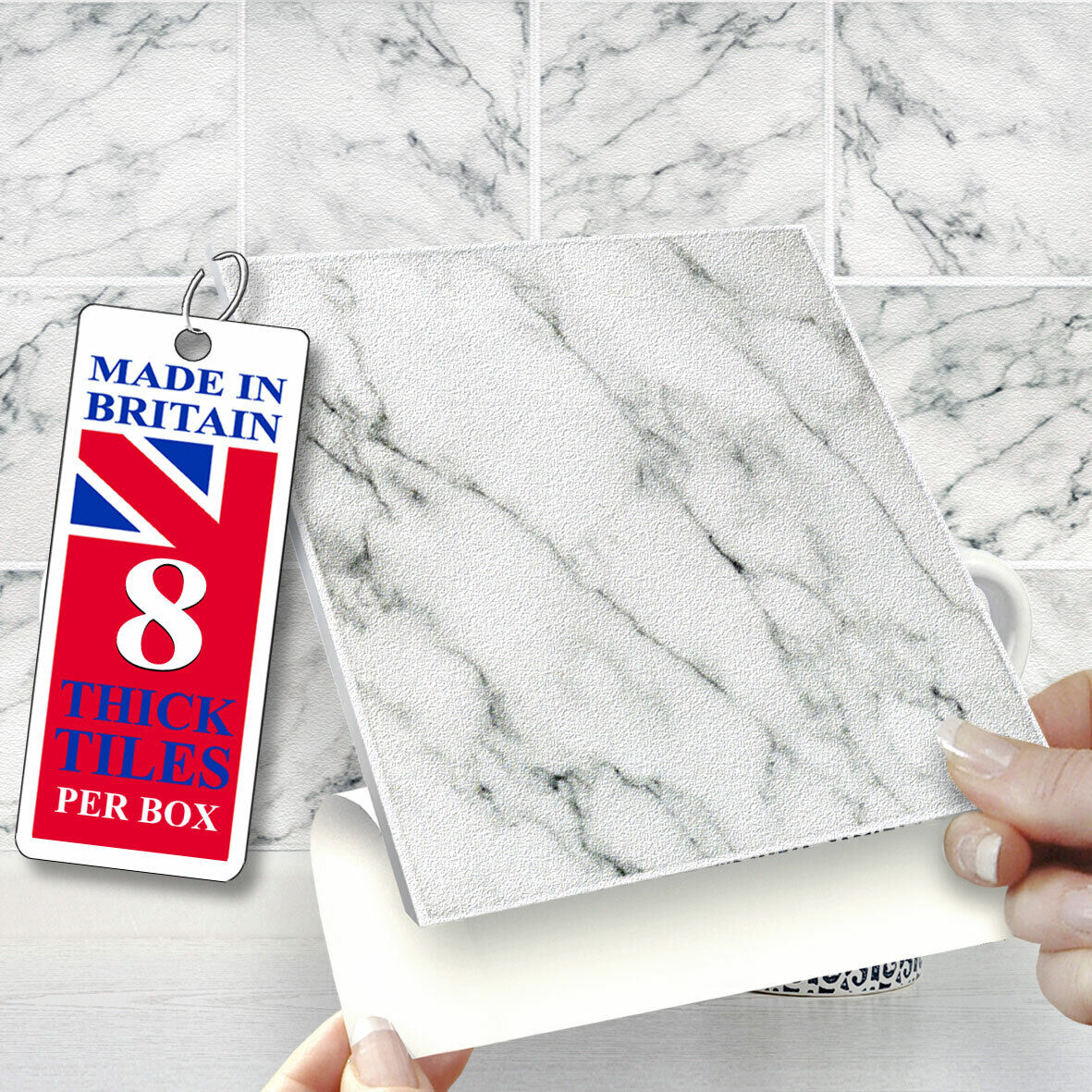 Stick On Wall Tiles | Pack Of 8 Classic Marble 6" Self Adhesive Wall Tiles