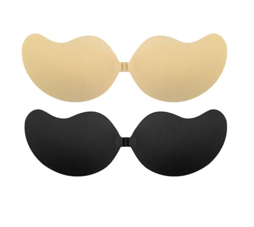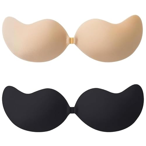 Vtelor Sticky Bra Backless Invisible Stick on Bra Push up Strapless Women's Adhesive Bras Ladies Invisible Strapless Bras Push up Lift & Enhance Cleavage (UK, Cup & Band, C, Beige+Black)