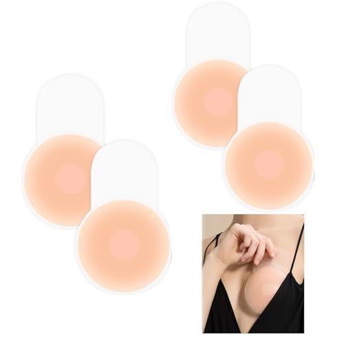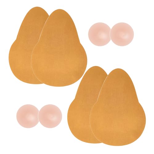 Silicone Pasties Nipple Covers with Lift - 4 Pairs Sticky Bra Push Up Invisible Adhesive Strapless Bras, Reusable Cup Breast Lift Up Stick on Bra for Backless Dress Women Beige