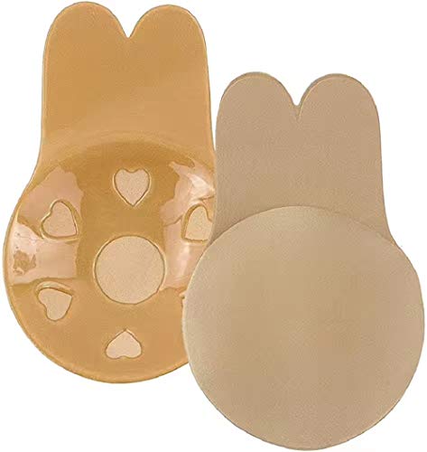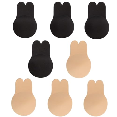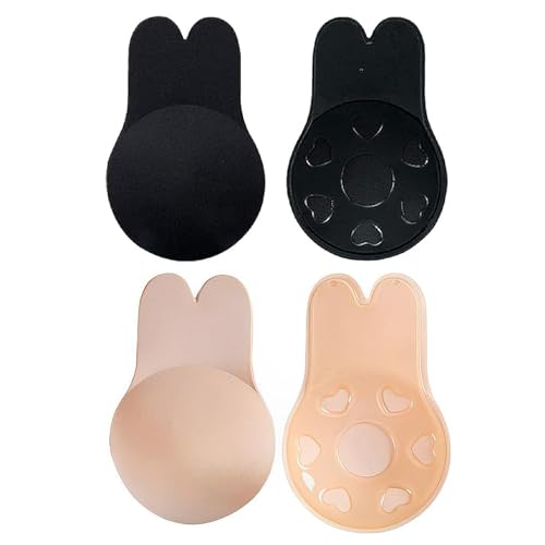 JFGDVW 2 Pairs Breathable Rabbit Ear Lift Pasties, Stick on Bra Cups, Strapless Push up Bras, Invisible Bra, for Women,for Weddings,Party(Black,Nude)