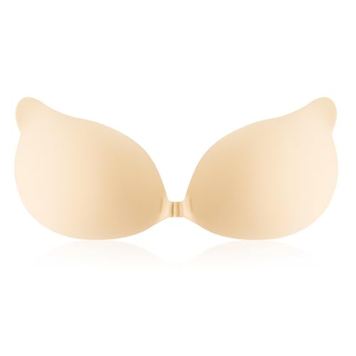 Vtelor Sticky Bra Backless Invisible Stick on Bra Push up Strapless Women's Adhesive Bras Ladies Invisible Strapless Bras Push up Lift & Enhance Cleavage (UK, Cup & Band, C, Beige)