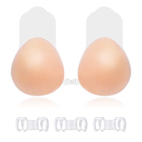 ANGELEMM Invisible Sticky Bra Push Up - Stick On Bras for Women, Reusable Women's Adhesive Bras, Strapless Backless Silicone Bra with 4 Nipple Covers for Party Dress (B Cup) Beige
