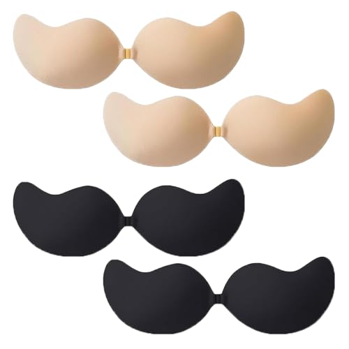 YcsRnn 4 Pack Stick on Bra Push Up - B Cup Sticky Bra for Women, Invisible Adhesive Strapless Bra, Reusable Comfortable Stick on Push Up Bra (2 Black, 2 Nude)