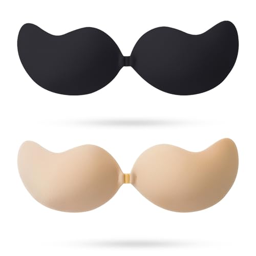 2 Pack Adhesive Bra Backless and Strapless Push Up Bra (Cup A-D) - Invisible and Stick on Bra and Nipple Covers for Backless Dresses