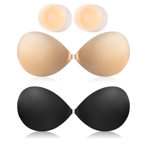 2 Pack Adhesive Bra Backless and Strapless Push Up Bra (Cup A-D) - Invisible and Stick on Bra and Nipple Covers for Backless Dresses Hair