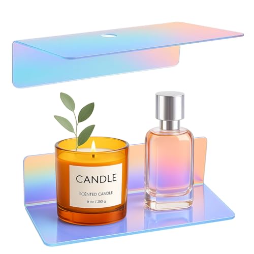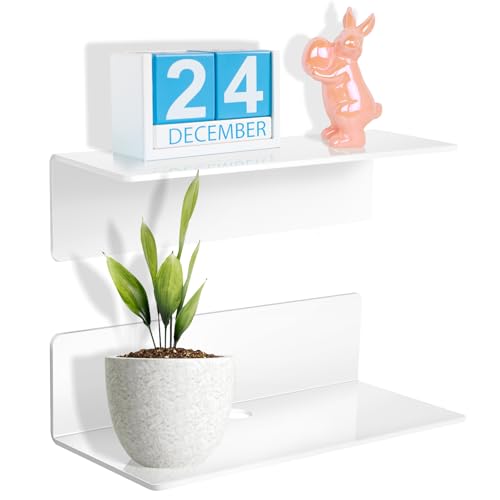 Yhsioaklo Floating Shelves | Acrylic Floating Shelves No Drilling Small Wall Shelf | White Shelving Units For Bedroom, Living Room, Bathroom And Kitchen | Stick On Estant