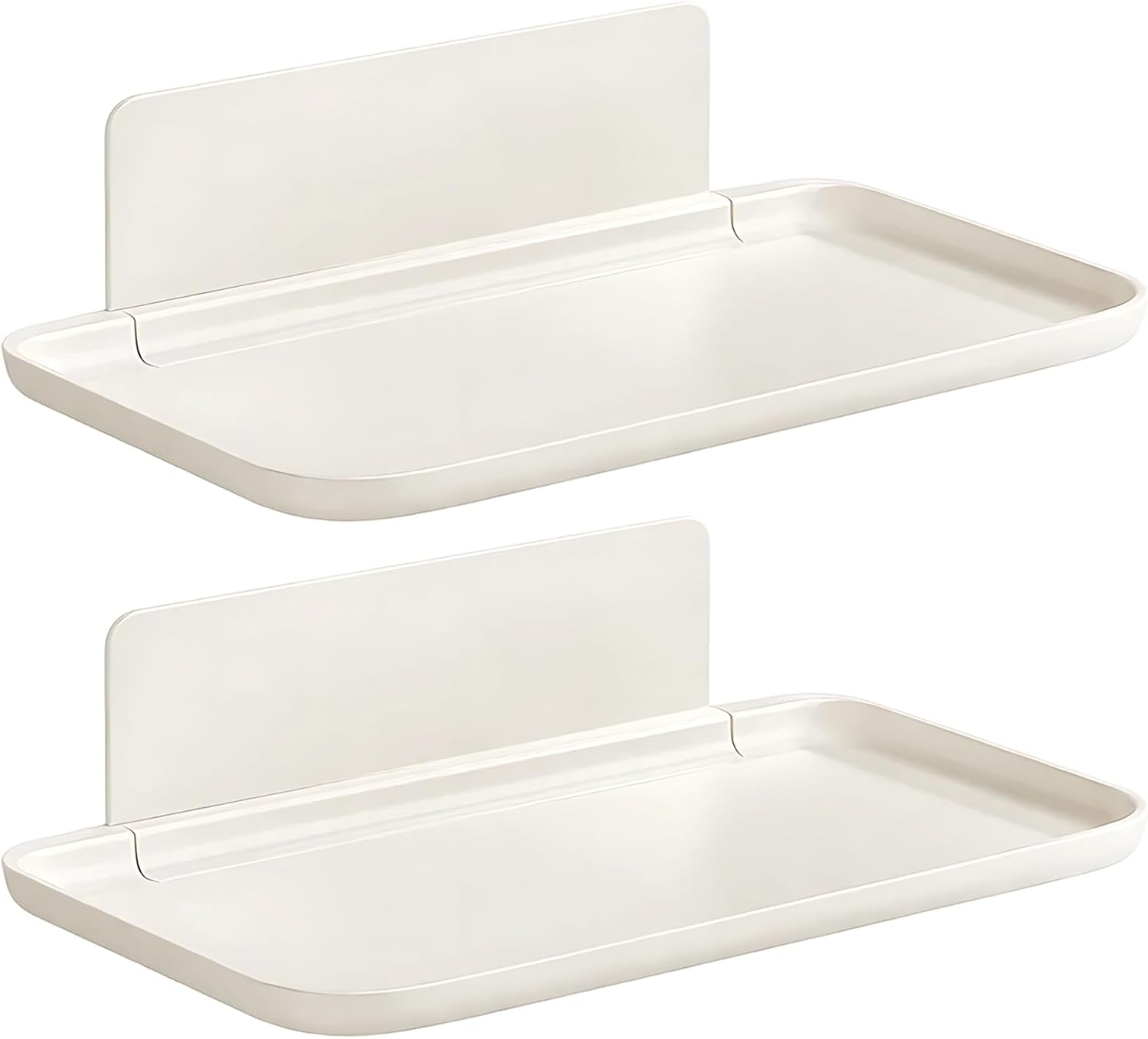 JEWEDECO 2Pcs Small Foldable Adhesive Floating Wall Shelves for Bathroom Storage, Plastic Stick on Shelves No Drill, Space-Saving Organizer for Towels, Soap, and Phones