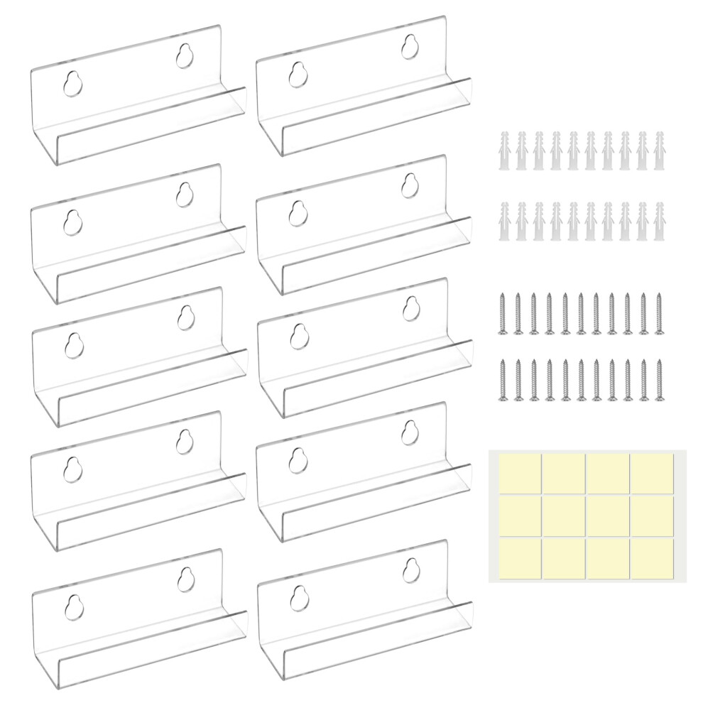 EUIOOVM 10 PCS Vinyl Wall Mount Acrylic Shelves 10CM Vinyl Record Display Stick on Shelves 4 Inch Clear CD Display in Home Office