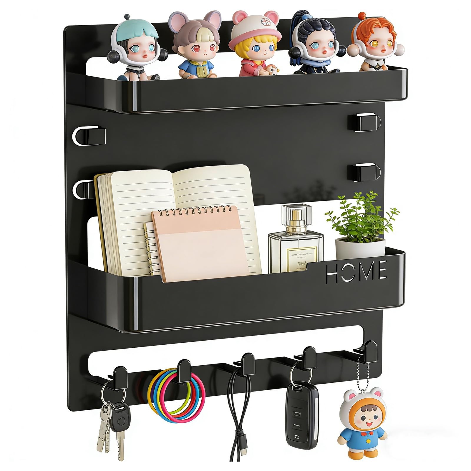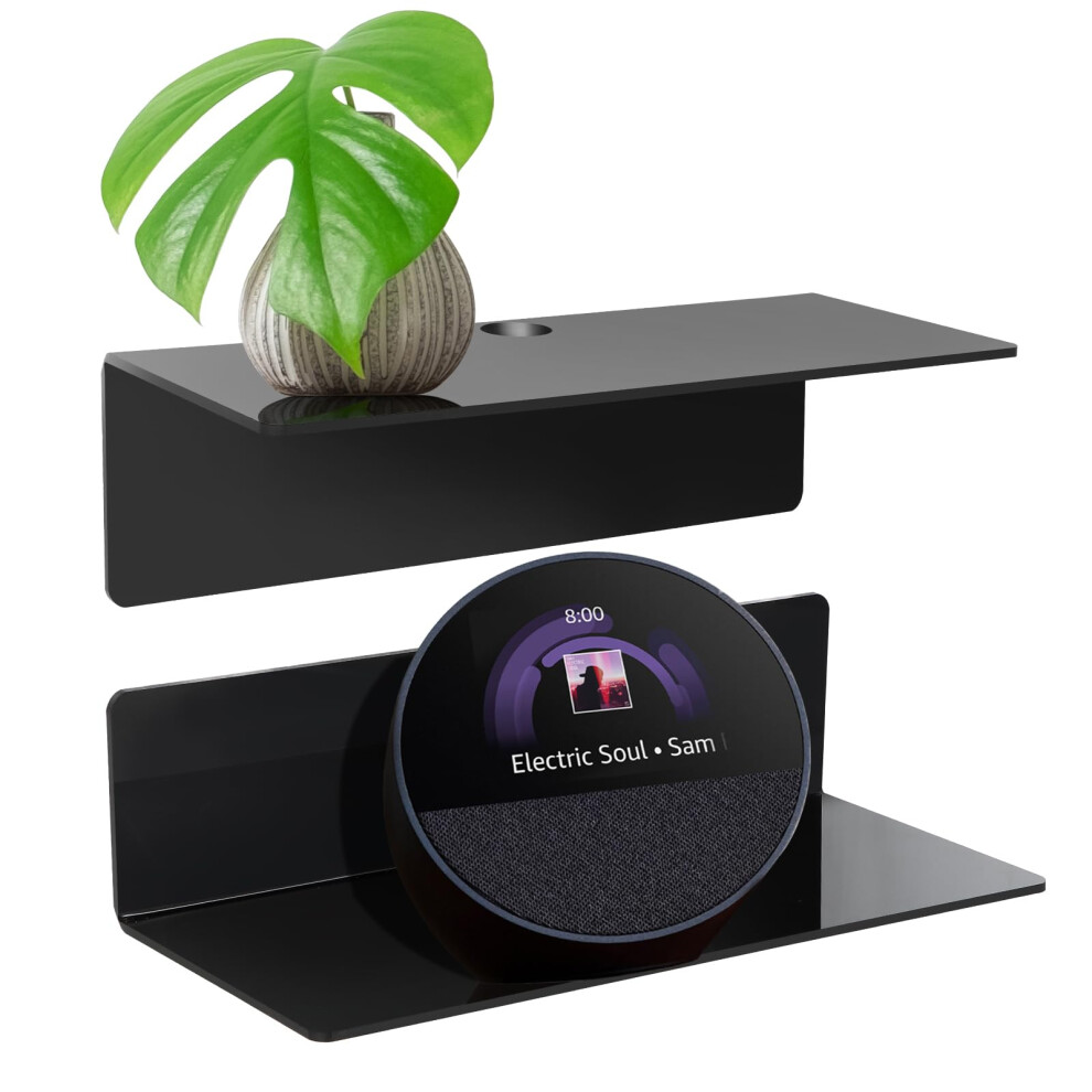 MAGOSIS Floating Shelves for Wall 23×10cm, Stick On Black Shelves, No Drill Self Adhesive Acrylic Shelves to Expand Wall Space, Mini Shelf for Smart Devices, Figures & Ornaments – 2 Pack