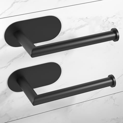 HITSLAM Toilet Roll Holder Self Adhesive 2 Pack Matte Black 304 Stainless Steel Stick on Toilet Paper Holder for Bathroom